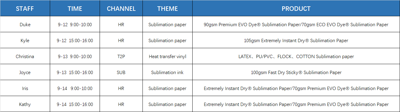 In this DPES, you will see our new product:90gsm Premium EVO Dye® Sublimation Paper, 70gsm Premium EVO Dye® Sublimation Paper, 70gsm ECO EVO Dye® Sublimation Paper