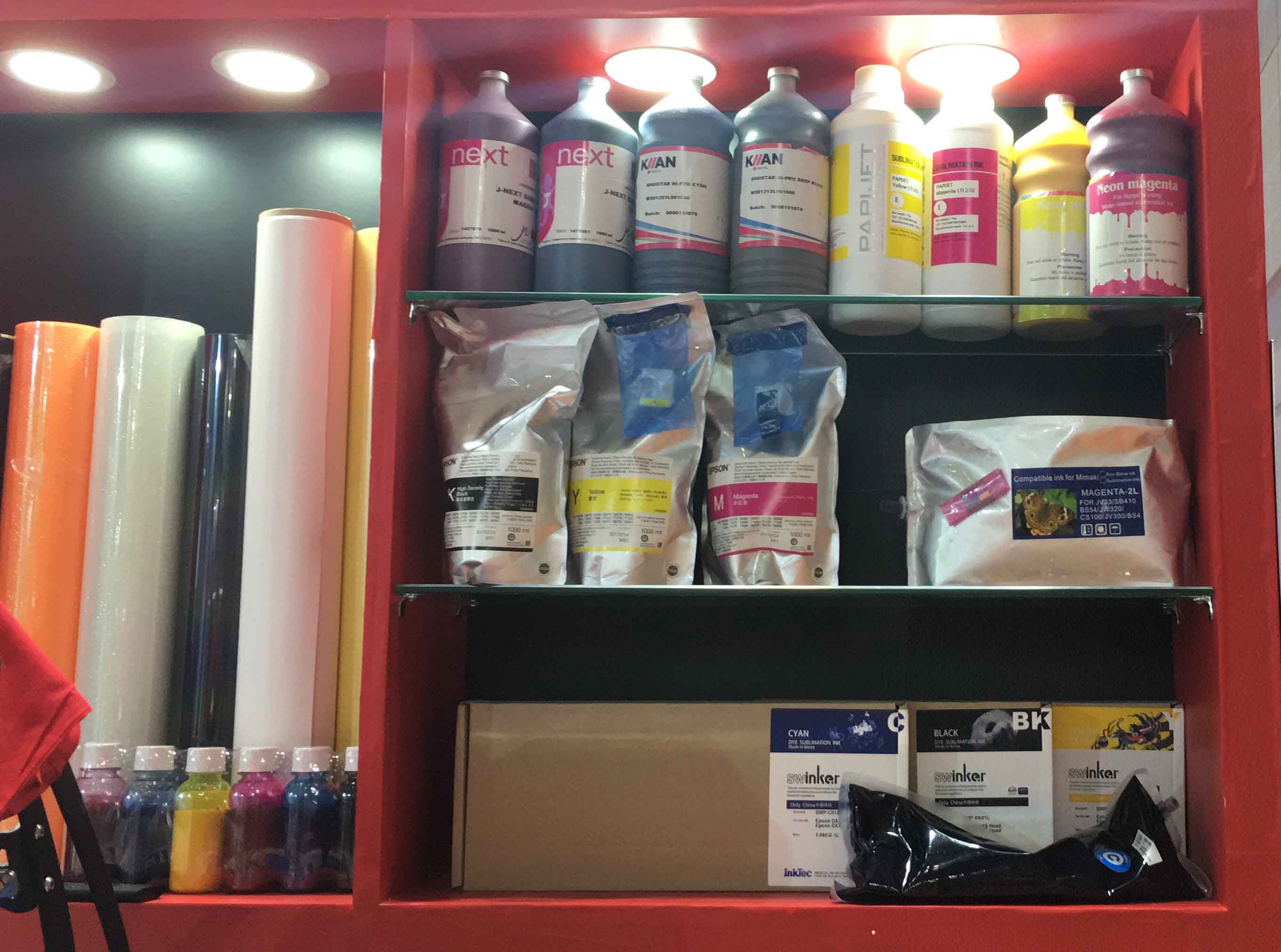 MIMAKI printer ink,EPSON sublimation ink,KIIAN dye ink,PAPIJET inkjet ink, INKTEC dye sublimation ink and many many more sublimation ink.