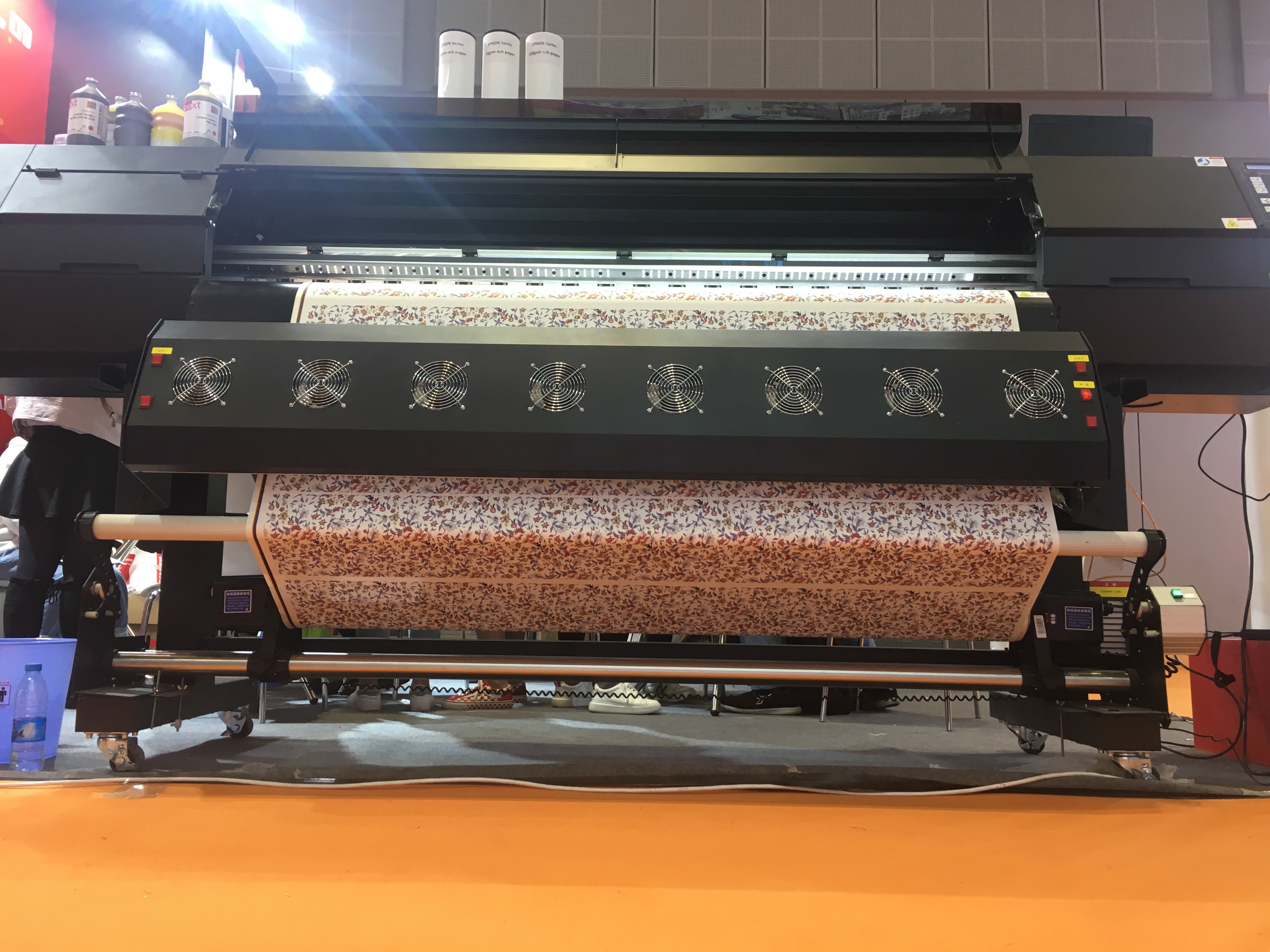 We also show our most popular transfer paper printer in the exhibition ----Three 5113 print heads sublimation printer .