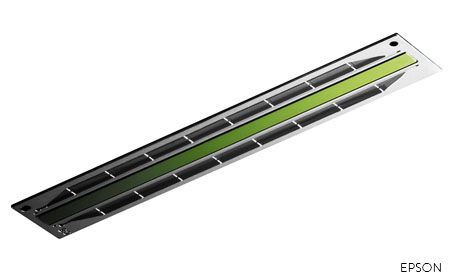 The PrecisionCore printheads feature micron thick piezo-electric crystals, which are a hundredth of a human hair thick, resulting in a higher density of print nozzles and smaller ink drop sizes for fine photographic details.