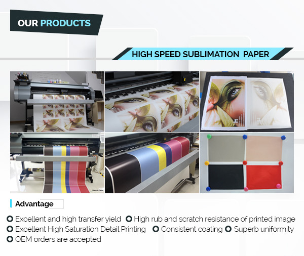 45/60/70sgm sublimation paper suit to high speed machine. Like MSJP series, REGGIANI printer. In usual, those type, we make with jumbo rolls like 5000M, 10,000M