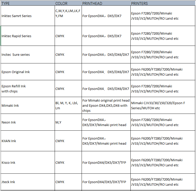A: We offer original Italy based sublimation ink for KIIAN and Jnext. We also offer Inktec Sublinova sublimation ink.